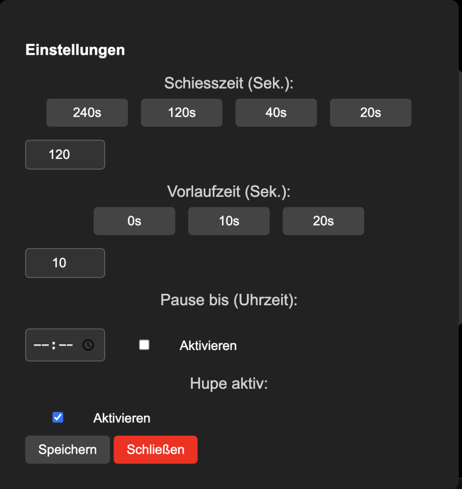 Ihr habt in der Ampel auch einige Einstellmöglichkeiten: